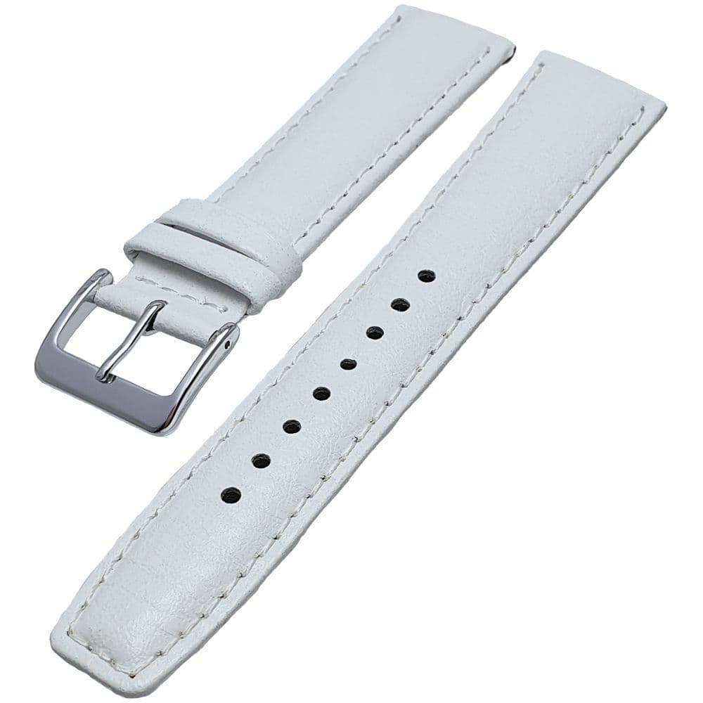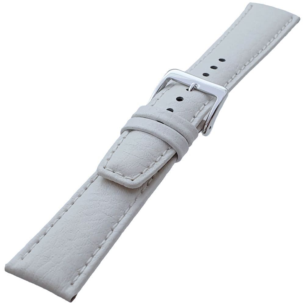 Genuine leather buffalo grain watch strap fitted with a mirror polished stainless steel buckle. A comfortable and luxurious strap with a contrasting white stitched edging and nubuck lining.